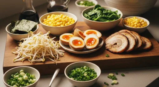Los toppings son los que transforman tu ramen en un plato gourmet.